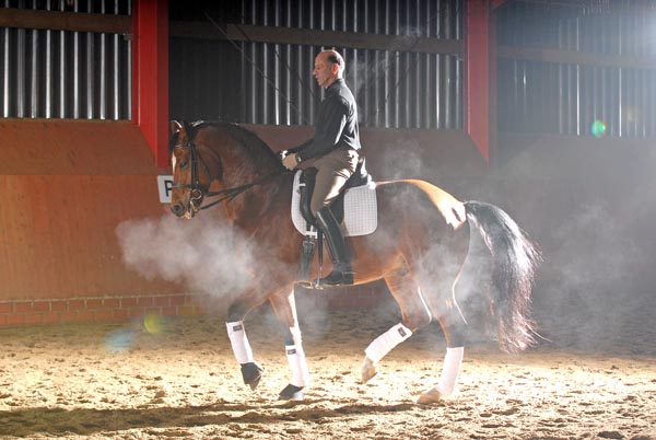Aufgewachsen im schleswig-holsteinischen Kellinghusen sieht Jonny Hilberath seine beruflichen Wurzeln ganz klar in der ländlichen Reiterei. Dressur, Springen und Vielseitigkeit - in allen Disziplinen war er bis zur Klasse S erfolgreich. Die Begegnung mit der Dressurreiterin Rosemarie Springer, bei der er seine Berufsausbildung absolvierte, war der entscheidende Wendepunkt in seiner sportlichen Karriere. Ebenso das Training mit dem außergewöhnlichen Herbert Rehbein prägten den aufstrebenden Dressurreiter als Profi. Dann führte ihn der Weg zu Detlef Saul nach Bremerhaven, wo er in den 12 Jahren viele Grand-Prix-Erfolge erreichte und 1992 seine berufliche Karriere mit der Goldmedaille der Deutschen Meisterschaft der Berufsreiter krönte. in der Zeit lernte er auch die Schwedin Annika kennen, die er 1993 heiratete. Zwei Jahre später machten sich die beiden selbständig. Seitdem ist der Trainer und Ausbilder Jonny Hilberath aus der internationalen Dressurszene nicht mehr wegzudenken. Für Schlagzeilen sorgte etwa seine Schülerin Bernadette Pujals aus Mexiko mit dem Hannoveraner Vincent bei den Weltreiterspielen in Aachen, in Hongkong betreute er die Japanerin Yuko Kitai und stand auch der Australierin Hayley Beresford zur Seite. Die Südafrikanerin Nathalie Hobday trainiert bereits seit 15 Jahren, seit der Weltmeisterschaft in Rom in Abbendorf. Championatsreiterinnen und Reiter aus der ganzen Welt holen sich die wertvollen Tipps und Tricks von dem Mann, der als Bundestrainer das Deutsche Dressurteam auf der Olympiade in London zu Silbermedaille führte.